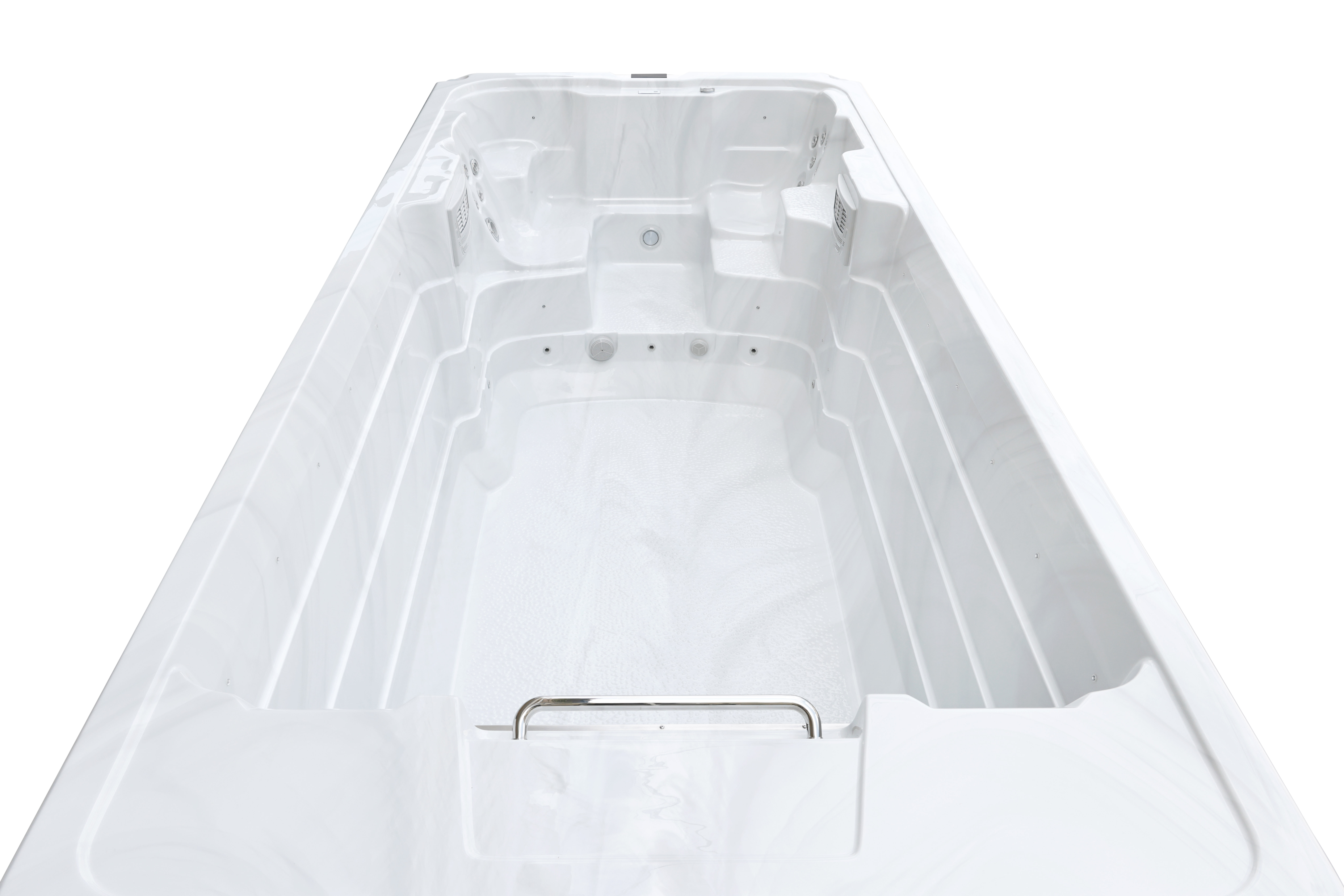Helsinki Turbo оснащен высокопроизводительным пропеллерным насосом мощностью 6,5 кВт с 16 скоростными режимами, генерирующий сильный и ровный поток, позволяющий комфортно плавать на одном месте. Дополнительный насос 1,5 кВт поддерживает работу 18 массажных форсунок, обеспечивая эффективное восстановление после физических нагрузок.