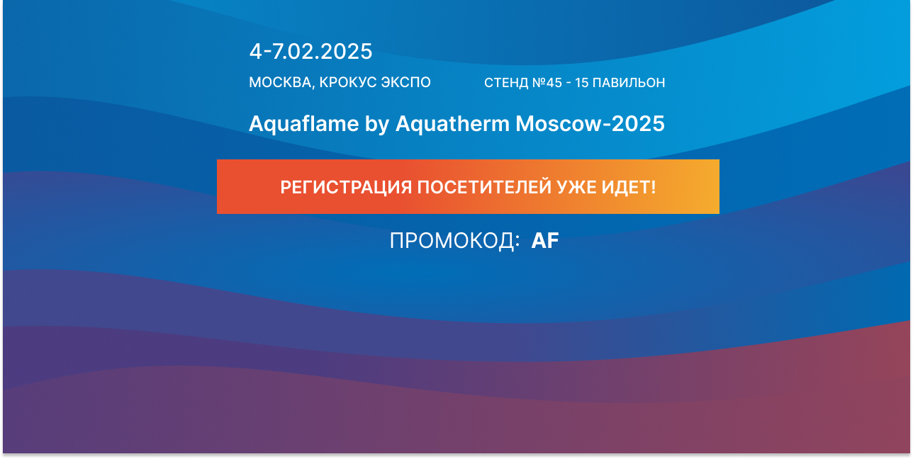 Мы приглашаем коллег, партнеров существующих и потенциальных дилеров, заинтересованных в сотрудничестве, на выставку Aquaflame by Aquatherm Moscow-2025 с 04 по 07 февраля 2025 года.